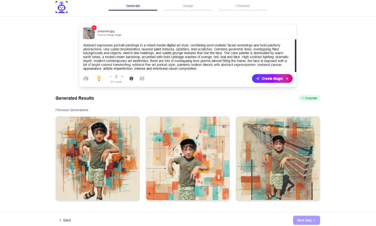 Go from idea to premium print in a few clicks. Generate your image, choose your frame, adjust the layout live, then order to your door.